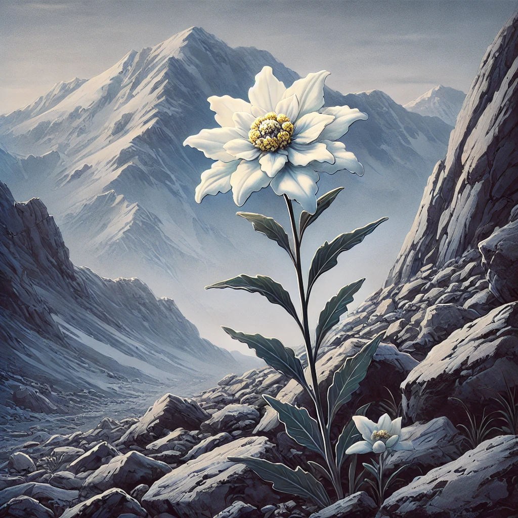 エーデルワイスの花そのものが高山植物であり、厳しい環境の中で咲き誇る姿は、困難に立ち向かう強さと純粋さを象徴しています。
