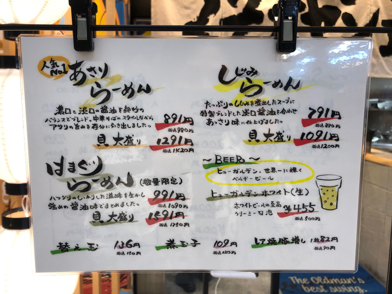 他にも魅力的なメニューが揃っており、はまぐりラーメンやしじみラーメン、ホタテつけ麺など、海の恵みをふんだんに活かしたラーメンが並んでいます。