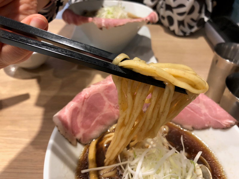 太麺の選択も絶妙で、もし細いちぢれ麺だったら、スープが絡みすぎて塩味が強くなりすぎるかもしれません。