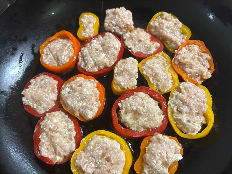 あとはパプリカに詰めて、焼くだけ。
